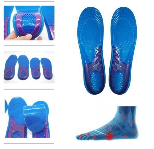 Practical and helpful massaging silicone gel insoles Provides special care and firm support for your feet. Soft and comfortable, helps relieve rubbing pain Prevent callous and blisters caused by new shoes with this pair. The gel absorbs the impact on the whole foot and can help reduce stress and strain on the ankle, knee and lower back. Perfect for physical and sporting activities as well as everyday use. Durable and Hygienic Anti-fungus, anti-bacterial and washable, providing all day comfort and molding to the shape of the feet along with shock absorbing and cushioning features.